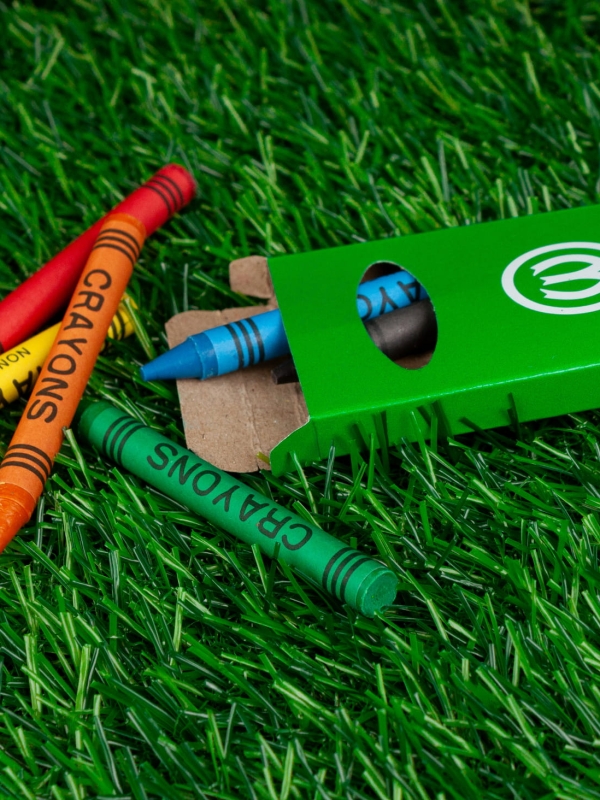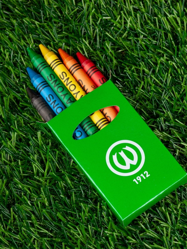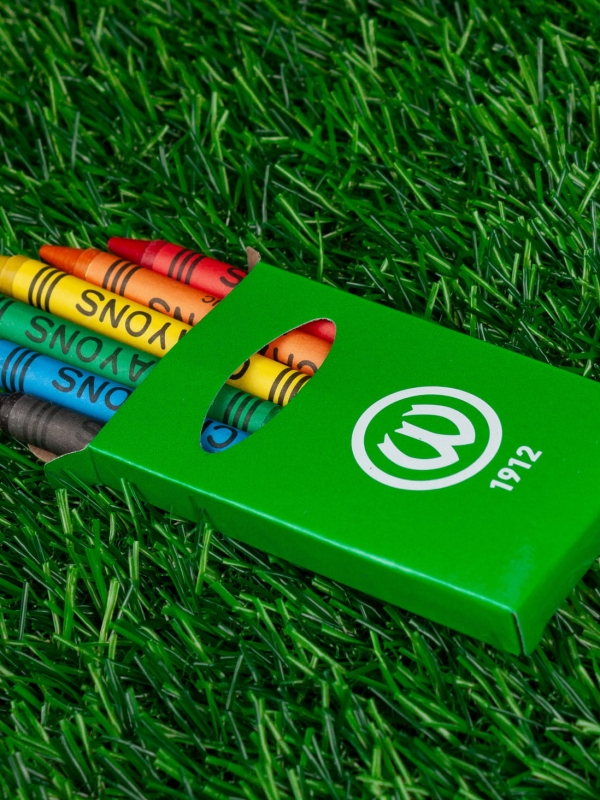Zestaw 6 kredek świecowych w pudełku z okienkiem o błyszczącym, zielonym wykończeniu z herbem Warty Poznań