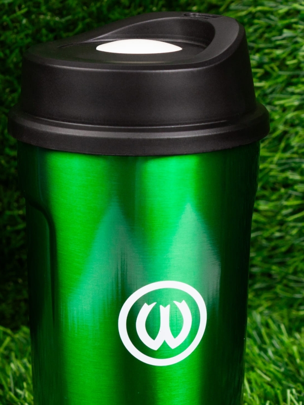 Nasz kubek termiczny to idealny towarzysz na co dzień. Delektuj się każdym łykiem swojego ulubionego napoju w towarzystwie barw klubowych Warty Poznań.